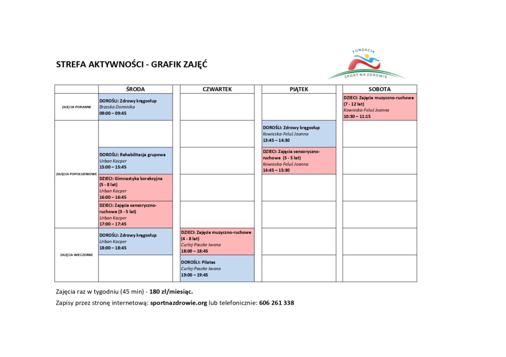 Jeżeli na liście nie ma zajęć, które Państwa interesują – prosimy o kontakt z biurem: 606 261 338 lub biuroszemud@sportnazdrowie.org.